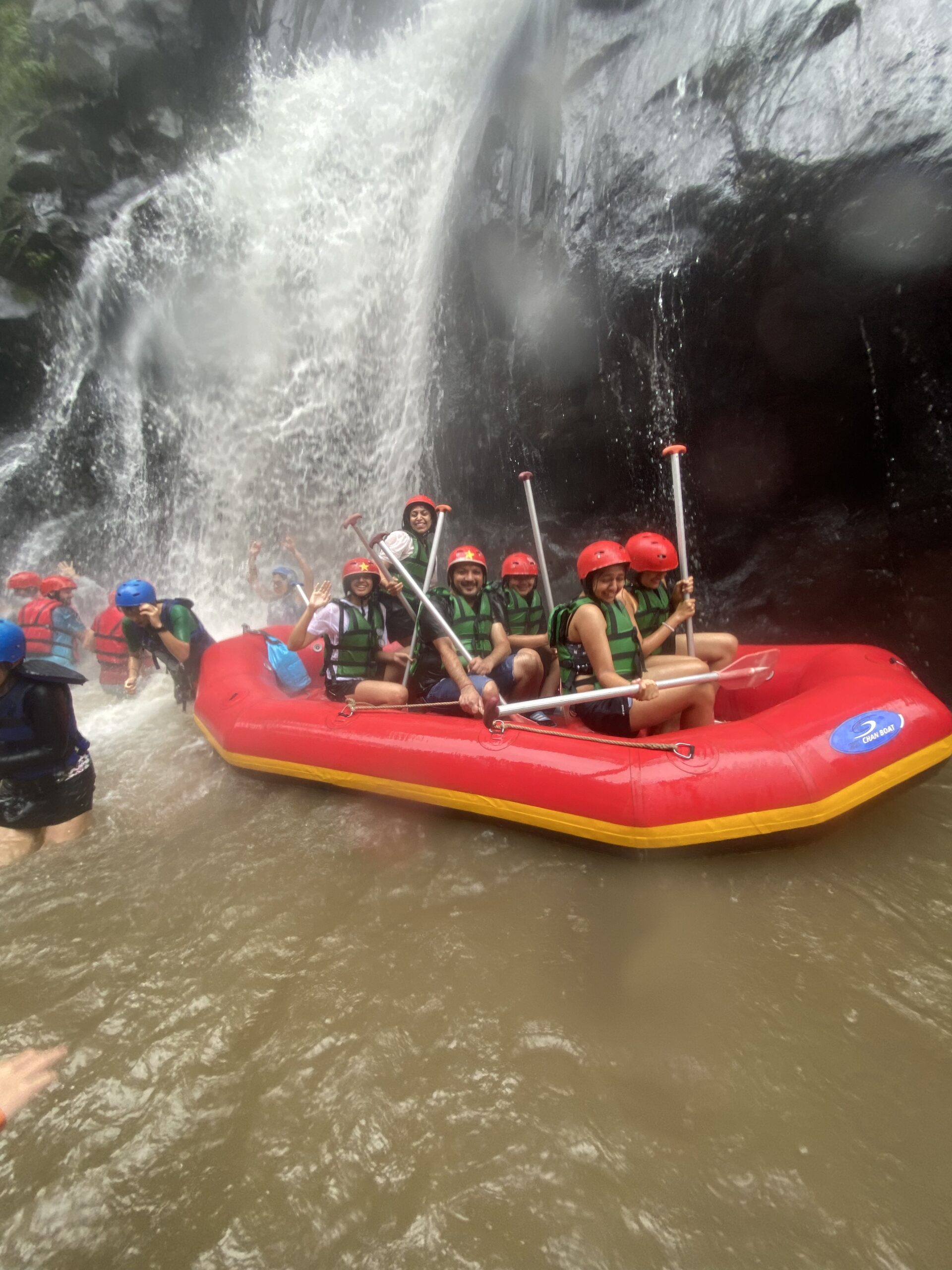 On the second-last day of our trip, we went for white-water rafting in the morning. Before starting off, our guide gave us a brief on how to manage the raft. It wasn’t much: just how to move forward, backward, right, left and, well, not be petrified. We stopped at a small waterfall and got drenched by it. Then we continued. We smoothly completed the first half of the journey and stopped for a break. After having some delicious coconut water on a small piece of land in the middle of the river, we resumed our ride. Just after a few minutes, our guide fell off the raft. We freaked out. But he fortunately held the raft with his hands and climbed back in. We breathed a sigh of relief and then went on. I enjoyed my first rafting experience and would like to go rafting again in the future.